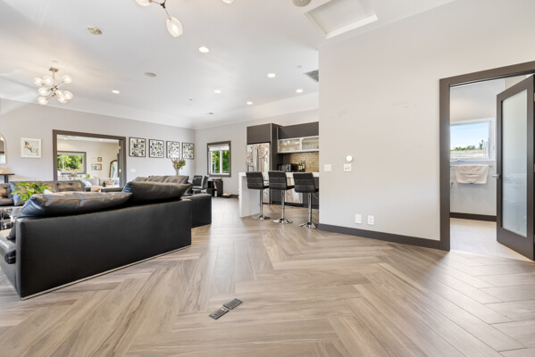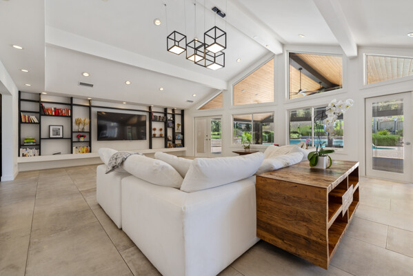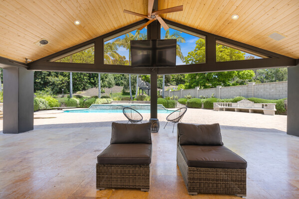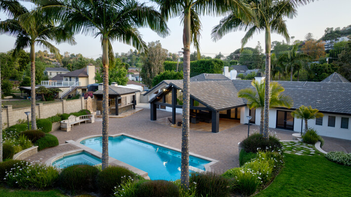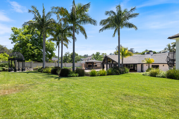 Welcome to your dream home - a spectacular single-story estate set on nearly one acre of lush, beautifully landscaped grounds. Tucked behind a private gated entry, this expansive residence offers approx. 7, 000 square feet of luxurious living space, thoughtfully designed across two wings that converge into stunning communal areas. At the heart of the home is a show stopping open-concept kitchen and family room, featuring wall-to-wall windows that frame sweeping views of the backyard oasis. The adjoining dining room is ideal for hosting large, festive gatherings with ease and elegance. The private east wing features two spacious en-suite bedrooms, including a lavish primary suite complete with a fireplace, spa-inspired bath with oversized shower, freestanding tub, separate toilet and bidet, and a generous walk-in closet. The west wing offers two additional bedrooms - one en-suite and a stylish home office, providing flexibility for family, guests, or workspace needs. Each room has been meticulously remodeled with high-end materials and thoughtful design details that exude both comfort and sophistication. Custom cabinetry, premium appliances, and designer finishes elevate every corner of this extraordinary home. Above the four-car garage is a separate, private-entry apartment - a versatile open-concept layout with distinct living, kitchen, and sleeping zones, ideal for guests, in-laws, or a home studio. This exceptional bonus space is perfect for extended stays, creative endeavors, or income potential. The grounds are nothing short of breathtaking. A motorized gate opens to an expansive motor court with ample space for a dozen vehicles, including room for an RV or boat. The professionally designed landscape combines the charm of an English garden in front, while the backyard offers a resort experience: a covered patio, a high-end BBQ island, sparkling pool with elevated spa, sprawling lawn, gazebo, and dozens of mature trees for privacy and beauty. A charming casita just off the pool features a kitchenette and full bath, making it perfect for guests or a poolside retreat. The entire property is a harmonious blend of nature and design - ideal for entertaining, relaxing, and enjoying SoCal coveted indoor-outdoor lifestyle. This is a rare opportunity to own a fully renovated estate of this scale and privacy in one of Orange County's most desirable areas. Don't miss your chance to experience the perfect blend of elegance, comfort, and refined living. Your new home awaits.
